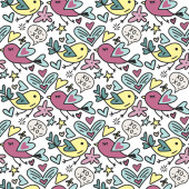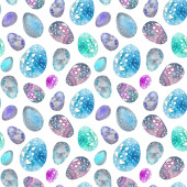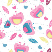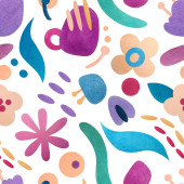 Bezproblemowy akwarela abstrakcyjny wzór z prostych kwiatów i kształtów na białym tle.