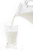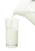 Świeże mleko wylewa szklaną butelkę izolowaną na białym tle