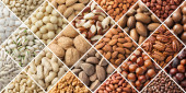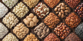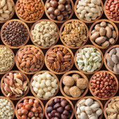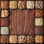 mieszać orzechy miski na tle stołu. pożywna żywność ekologiczna na przekąski.