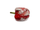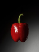 Umyta czerwona papryka z kroplami wody na czarnym tle.