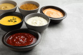 Zdjęcie "Wiele różnych sosów na białym drewnianym stole, miejsce na tekst " może być wykorzystywane do celów osobistych i komercyjnych zgodnie z warunkami zakupionej licencji Royalty-free. Obraz jest dostępny do pobrania w jakości wysokiej rozdzielczości do 5760x3840.