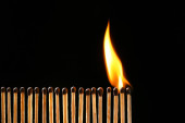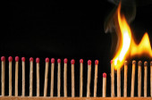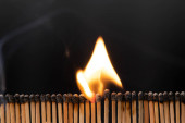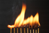 Linia spalania zapałek na czarnym tle, zbliżenie. Koncepcja inspiracji