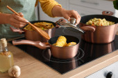 Zdjęcie "Kobieta przygotowuje pilaf w garnku gotowania, zbliżenie" może być wykorzystywane do celów osobistych i komercyjnych zgodnie z warunkami zakupionej licencji Royalty-free. Obraz jest dostępny do pobrania w jakości wysokiej rozdzielczości do 5760x3840.