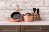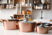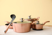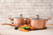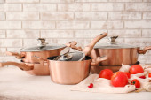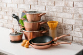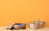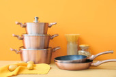 Zdjęcie "Zestaw naczyń kuchennych i różnych składników na drewnianym stole przy lekkiej ścianie" może być wykorzystywane do celów osobistych i komercyjnych zgodnie z warunkami zakupionej licencji Royalty-free. Obraz jest dostępny do pobrania w jakości wysokiej rozdzielczości do 5760x3840.