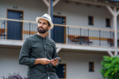 Zdjęcie "Przystojny brodaty mężczyzna rozmawiający przez telefon komórkowy podczas jazdy na rowerze w mieście" może być wykorzystywane do celów osobistych i komercyjnych zgodnie z warunkami zakupionej licencji Royalty-free. Obraz jest dostępny do pobrania w jakości wysokiej rozdzielczości do 5760x3840.