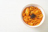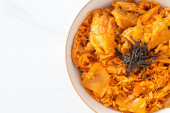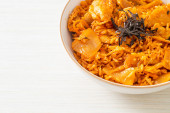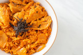 kimchi smażony ryż z plasterkami wieprzowiny - koreański styl żywności