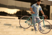 Zdjęcie "Przystojny brodaty mężczyzna z rowerem w mieście" może być wykorzystywane do celów osobistych i komercyjnych zgodnie z warunkami zakupionej licencji Royalty-free. Obraz jest dostępny do pobrania w jakości wysokiej rozdzielczości do 5760x3840.