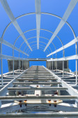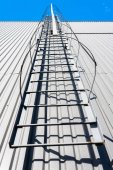 Drabinka metalowa ewakuacyjna przeciwpożarowa budynku na zewnątrz, zbliżenie