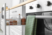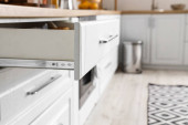 Zdjęcie "Szuflada w nowoczesnej kuchni, zbliżenie" może być wykorzystywane do celów osobistych i komercyjnych zgodnie z warunkami zakupionej licencji Royalty-free. Obraz jest dostępny do pobrania w jakości wysokiej rozdzielczości do 5760x3840.