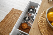 Zdjęcie "Otwarta szuflada na kuchnię w świetlicy, zbliżenie" może być wykorzystywane do celów osobistych i komercyjnych zgodnie z warunkami zakupionej licencji Royalty-free. Obraz jest dostępny do pobrania w jakości wysokiej rozdzielczości do 5760x3840.