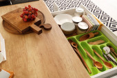 Zdjęcie "Otwarte szuflady z naczyniami kuchennymi w pokoju" może być wykorzystywane do celów osobistych i komercyjnych zgodnie z warunkami zakupionej licencji Royalty-free. Obraz jest dostępny do pobrania w jakości wysokiej rozdzielczości do 5760x3840.