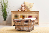 Różne zabawki edukacyjne na stylowym dywanie w pokoju