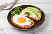Zdjęcie "tosty z jajkiem smażonym na drewnianym stole" może być wykorzystywane do celów osobistych i komercyjnych zgodnie z warunkami zakupionej licencji Royalty-free. Obraz jest dostępny do pobrania w jakości wysokiej rozdzielczości do 5760x3840.