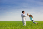 Zdjęcie "Starszy mężczyzna i dziecko na świeżym powietrzu na tle letniego nieba. Dziadek i syn dobrze się bawią. Rodzinne święto. Szczęśliwego Dnia Ojca" może być wykorzystywane do celów osobistych i komercyjnych zgodnie z warunkami zakupionej licencji Royalty-free. Obraz jest dostępny do pobrania w jakości wysokiej rozdzielczości do 5760x3840.