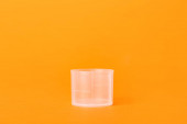 plastikowy kubek na szarym tle z przestrzenią do kopiowania, koncepcja środowiskowa