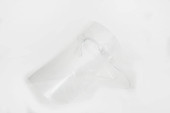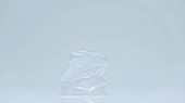 pokruszony plastikowy kubek na szarym tle z przestrzenią do kopiowania, koncepcja środowiskowa