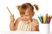 cute dziewczynka patrzy się przez szkło powiększające