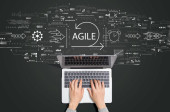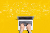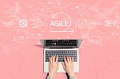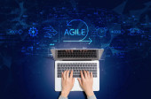 Zdjęcie "Zwinność koncepcji z osobą korzystającą z laptopa" może być wykorzystywane do celów osobistych i komercyjnych zgodnie z warunkami zakupionej licencji Royalty-free. Obraz jest dostępny do pobrania w jakości wysokiej rozdzielczości do 5760x3840.