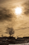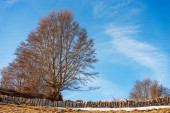 Pojedyncze gołe buki i formacje skalne na płaskowyżu Lessinia Regionalny Park Naturalny (Altopiano della Lessinia), gmina Bosco Chiesanuova, prowincja Werona, Wenecja Euganejska, Włochy, Europa.