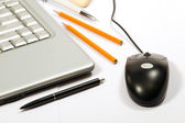 Mysz komputerowa i klawiatura na białym tle. Przestrzeń kopiowania