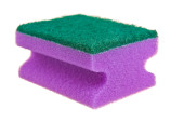 Fioletowa gąbka czyszcząca z zielonym ścierniwem wyizolowana na biało