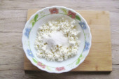 Jaja na twardo, schłodzić i pociąć wzdłuż na pół. Ostrożnie wyjąć żółtka, zacierać widelcem i dodać do miski paluszki krabowe i ser z ziołami. Odłóżcie na bok połówki białek jaj. Do miski dodaj majonez. Sól w razie potrzeby, biorąc int