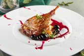 Zdjęcie "Pieczony stek wieprzowy z warzywami i sosem. Kotlety wieprzowe z żeberkami. danie główne wieprzowiny w stylu rustykalnym" może być wykorzystywane do celów osobistych i komercyjnych zgodnie z warunkami zakupionej licencji Royalty-free. Obraz jest dostępny do pobrania w jakości wysokiej rozdzielczości do 5760x3840.