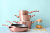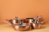 Zdjęcie "Zestaw miedzianych naczyń kuchennych na beżowym stole na białym tle" może być wykorzystywane do celów osobistych i komercyjnych zgodnie z warunkami zakupionej licencji Royalty-free. Obraz jest dostępny do pobrania w jakości wysokiej rozdzielczości do 5760x3840.