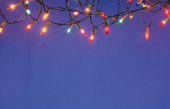 Christmas lights ciąg na niebieskim tle z kopią spac