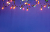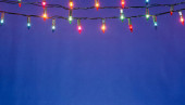 Christmas lights ciąg na niebieskim tle z kopią spac