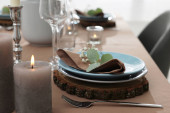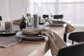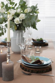 Świąteczny stół z pięknym kwiatowym wystrojem w pomieszczeniach