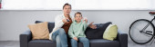 Zdjęcie "Uśmiechnięty chłopak boks z tatą w poduszkach w domu " może być wykorzystywane do celów osobistych i komercyjnych zgodnie z warunkami zakupionej licencji Royalty-free. Obraz jest dostępny do pobrania w jakości wysokiej rozdzielczości do 5760x3840.