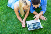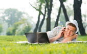 biznesmeni z laptopem w parku