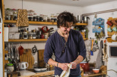 Zdjęcie "człowiek cięcia czerwony papryka w kuchni" może być wykorzystywane do celów osobistych i komercyjnych zgodnie z warunkami zakupionej licencji Royalty-free. Obraz jest dostępny do pobrania w jakości wysokiej rozdzielczości do 5760x3840.