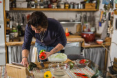 Zdjęcie "człowiek cięcia czerwony papryka w kuchni" może być wykorzystywane do celów osobistych i komercyjnych zgodnie z warunkami zakupionej licencji Royalty-free. Obraz jest dostępny do pobrania w jakości wysokiej rozdzielczości do 5760x3840.