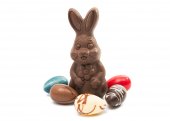 Zdjęcie "Easter chocolate bunny i kolorowe jajka izolowane na białym tle. Przestrzeń kopiowania" może być wykorzystywane do celów osobistych i komercyjnych zgodnie z warunkami zakupionej licencji Royalty-free. Obraz jest dostępny do pobrania w jakości wysokiej rozdzielczości do 5760x3840.