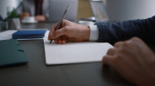 Przedsiębiorca pisze dokumenty papierowe w biurze. Koncepcja spotkań biznesowych.