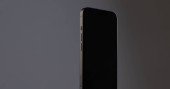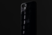 nowy nowoczesny telefon komórkowy iPhone 13 w kolorze czarnym na szarej ścianie