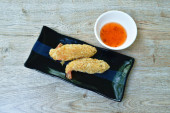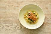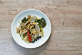 pikantny smażony kurczak z chili i liściem cytryny na naczyniu