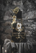 Zdjęcie "Szczegóły ciemnozielone stonowane kwadratowe ciasto weselne kwiat wystrój w luksusowym stylu, zbliżenie" może być wykorzystywane do celów osobistych i komercyjnych zgodnie z warunkami zakupionej licencji Royalty-free. Obraz jest dostępny do pobrania w jakości wysokiej rozdzielczości do 5760x3840.