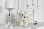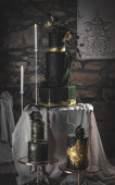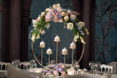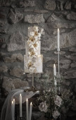 Martwa natura luksusowego stylu torty weselne, szare stonowane, na kamiennym tle