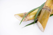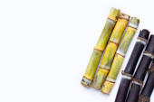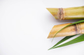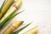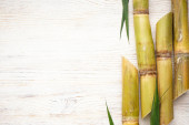 Trzcina cukrowa na szarym tle z miejscem na tekst, płaska leżanka.