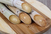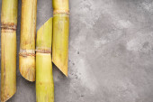 Trzcina cukrowa na szarym tle z miejscem na tekst, zbliżenie.