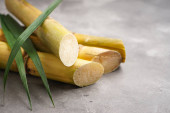 Zdjęcie "Granulowany brązowy cukier i trzcina cukrowa na szarym tle, miejsce na tekst. Widok z góry." może być wykorzystywane do celów osobistych i komercyjnych zgodnie z warunkami zakupionej licencji Royalty-free. Obraz jest dostępny do pobrania w jakości wysokiej rozdzielczości do 5760x3840.