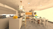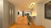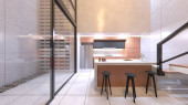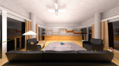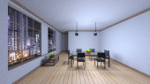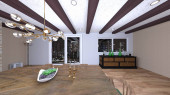 3D renderowanie salonu z dużymi oknami