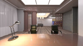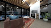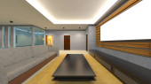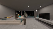 3D renderowanie salonu z widokiem na noc