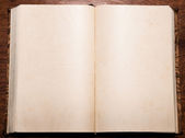 Stara, podarta i pożółkła książka z pustymi kartkami.