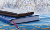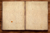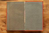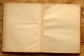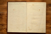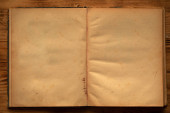 Stara, podarta i pożółkła książka z pustymi kartkami.