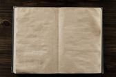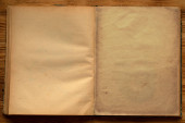Stara, podarta i pożółkła książka z pustymi kartkami.