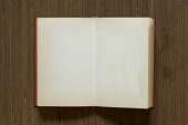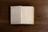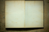 Stara, podarta i pożółkła książka z pustymi kartkami.